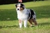 Bleu merle - DCC - petit modèle - excellente construction d'ensemble - excellente ligne - belle sortie d'encolure - jolie tête - rapport crâne chanfrein correct - très bonne avant main et poitrine - excellente arrière main et croupe - très belle allures typiques. Dommage il a eu une peur de la toise et donc je n'ai pu le mettre en valeur après mais il ne a obtenu la place de toute façon qui lui fallait ce jour-ci.